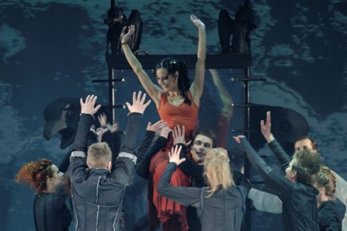 The dance performance āThe Legend of Notre Dameā first appeared on stage in Kaunas on a very appropriate date for this drama of love and passion ā the Valentineās Day of 2013 (February 14). The Libretto, based on the famous drama by Victor Hugo āNotre-Dame de Parisā, was written by a stage director and choreographer Aleksandras Jankauskas who tried to look at this popular story with the colors of dance and elegance. In his adaptation the choreographer puts forward the tragic story of the main character Esmeralda and retells the story from her point of view. However, the story is not only focused on her personal love drama, but conception of love as the basic principal. This is not a teaching about love, but a possibility to glance inside oneās own personal inner world while looking at it. The libretto embraces an idea that human desires may taint everything that is pure and magnificent, and only death can put an end to it. The creators of this performance are striving to present a popular and well-known story in a new way ā with the help of dance and elegance, and they find it important to reveal and to contrast metamorphosis of love to the destructive hate.